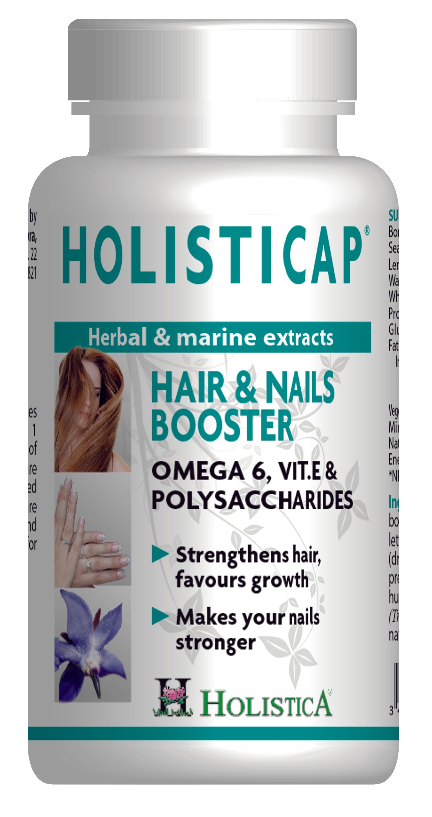 Holisticap is your natural solution for healthier, more beautiful hair and nails. Our unique formula combines Fish Gelatin, Borage Oil, Sea Lettuce, Shii-ta-ke, and organic Walnut Oil to provide essential nutrients for strength, shine, and vitality.