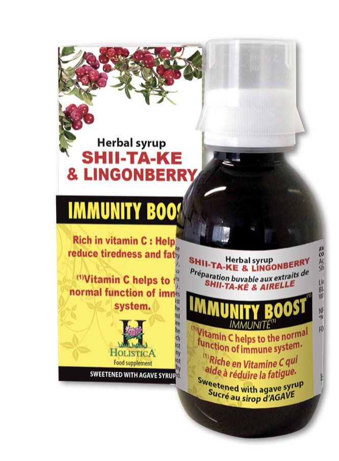 Agave syrup, spring water, shii-ta-ke extract (Lentinus edodes), lingonberry extract (Vaccinium vitis idaea), wild rose extract (Rosa canina), blackcurrant extract (Ribes nigrum), orange natural aroma (Citrus sinensis). Alcohol <1% vol